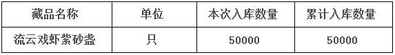 應發(fā)行會員申請,《流云戲蝦紫砂盞》已經(jīng)于2017年1月13日辦理景德鎮(zhèn)陶瓷交易所托管中心入庫手續(xù),檢驗簽證工作正在進行。現(xiàn)將托管結果公布如下: